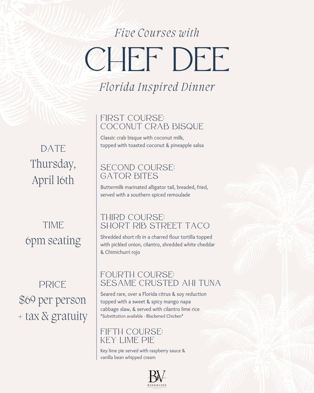 Bank + Vine – Dinner with Chef Dee